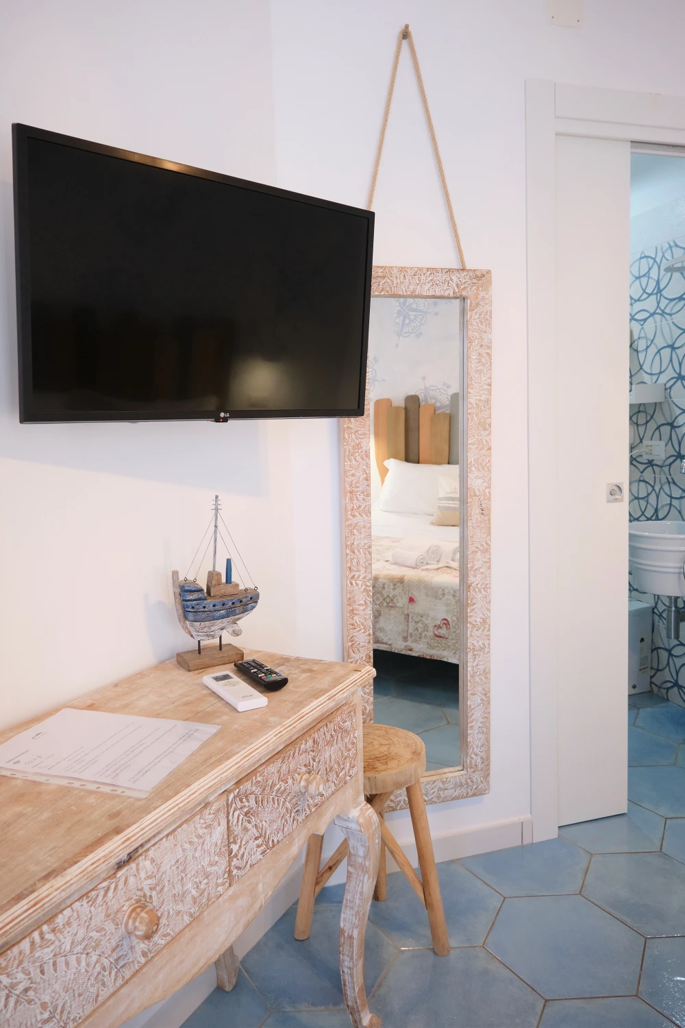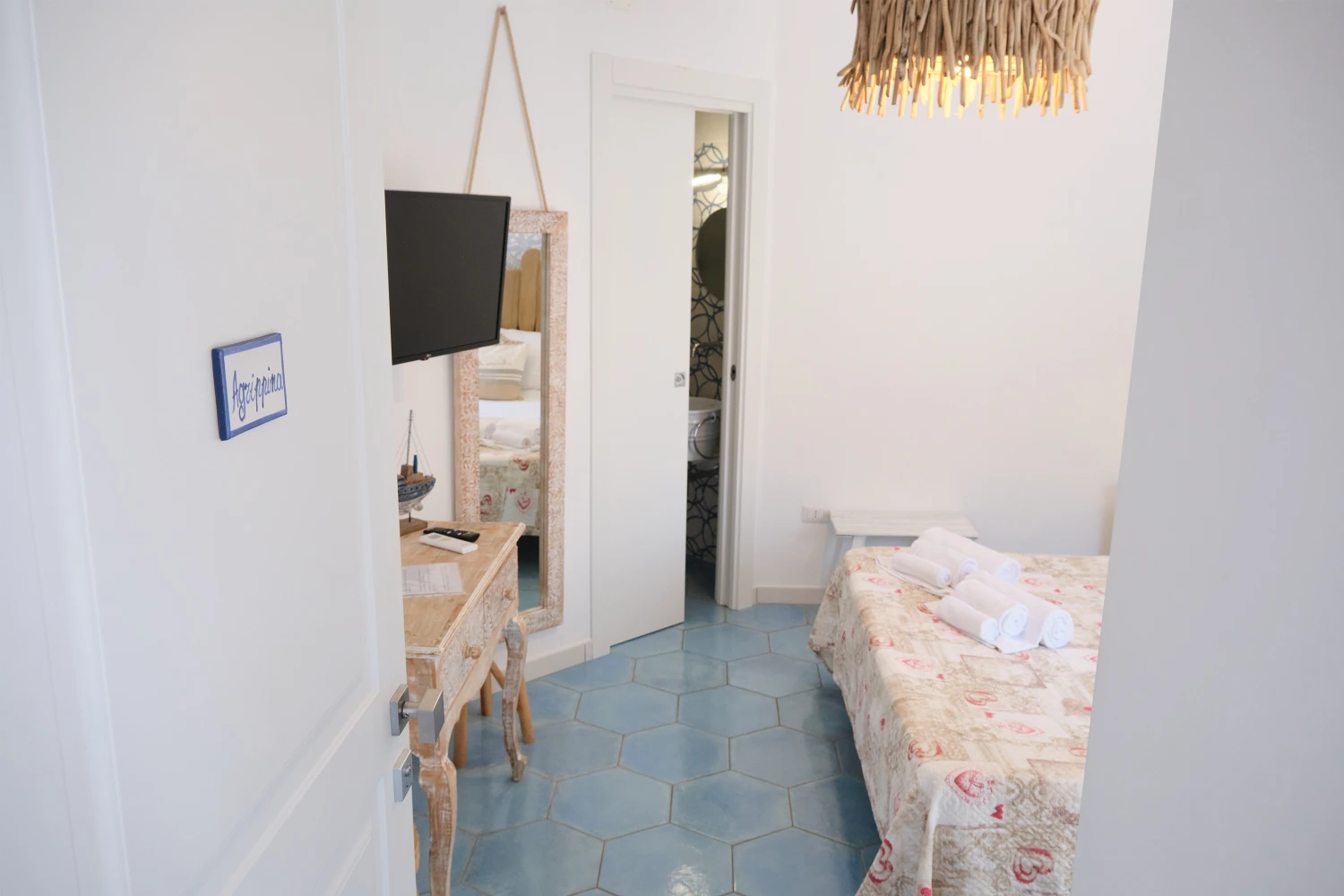 La camera è situata al primo piano , gode quindi di vista mare.